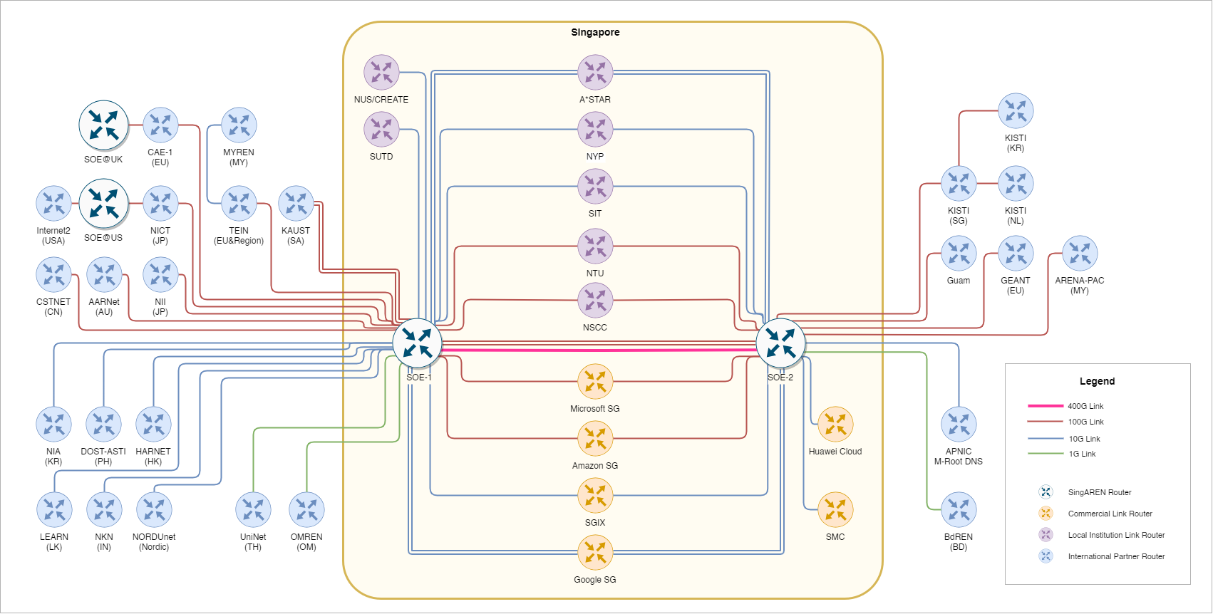 The objective of SOE is to enable a resilient and open Internet Exchange in Singapore to benefit the domestic and international research and education communities.